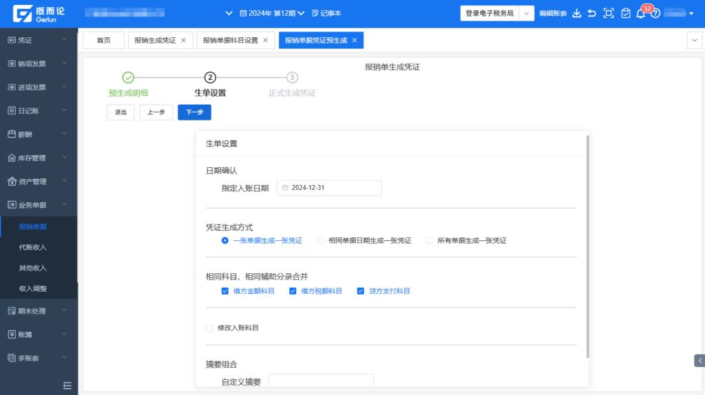 记账会计/助理会计:可以设置生单规则 ,查看并对账套内关联的业务主体的报销单据进行制单操作