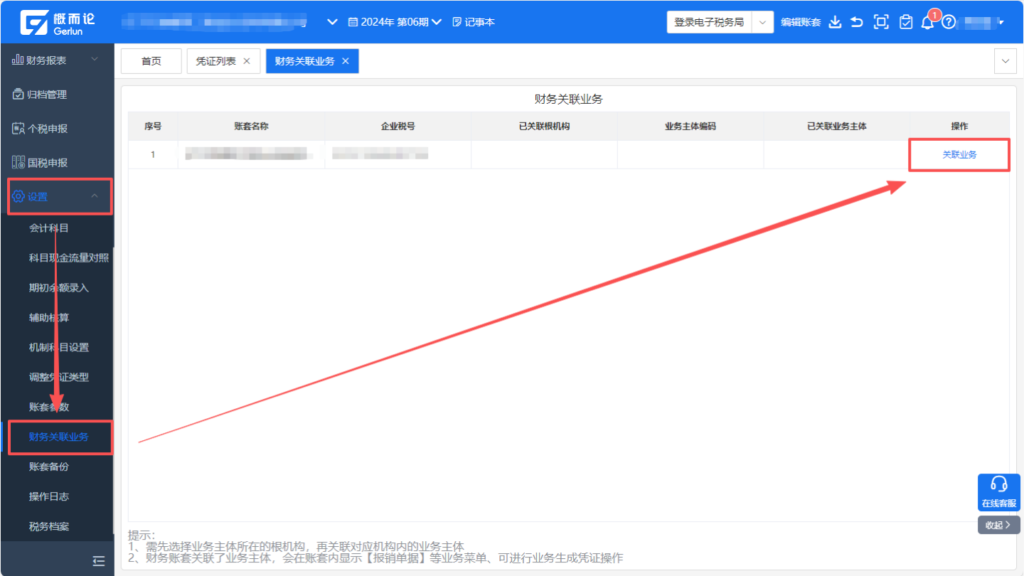 注:只有关联过业务主体的账套,才会在账套内显示该菜单