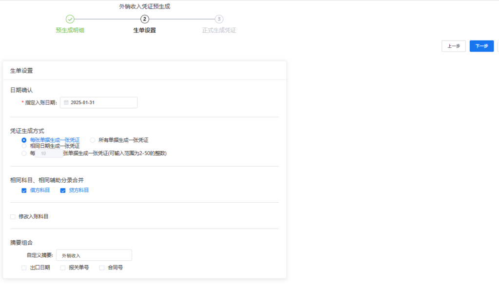 4、确认无误后可点击【下一步】,完成生单设置,生成凭证。