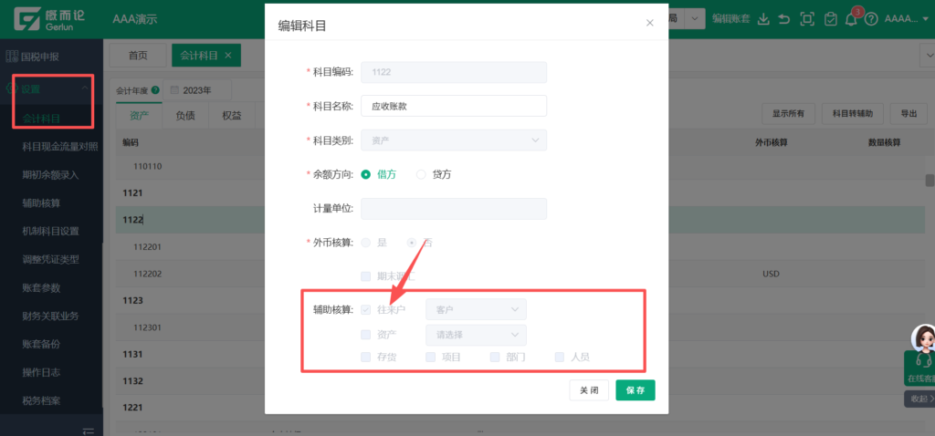 此时直接取消辅助勾选未置灰状态,需要清除期初和发生数据;