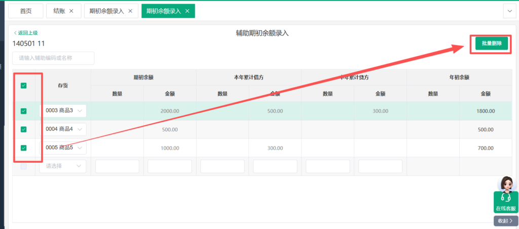 对期初数据进行删除,建议截图保存方便后续恢复数据。