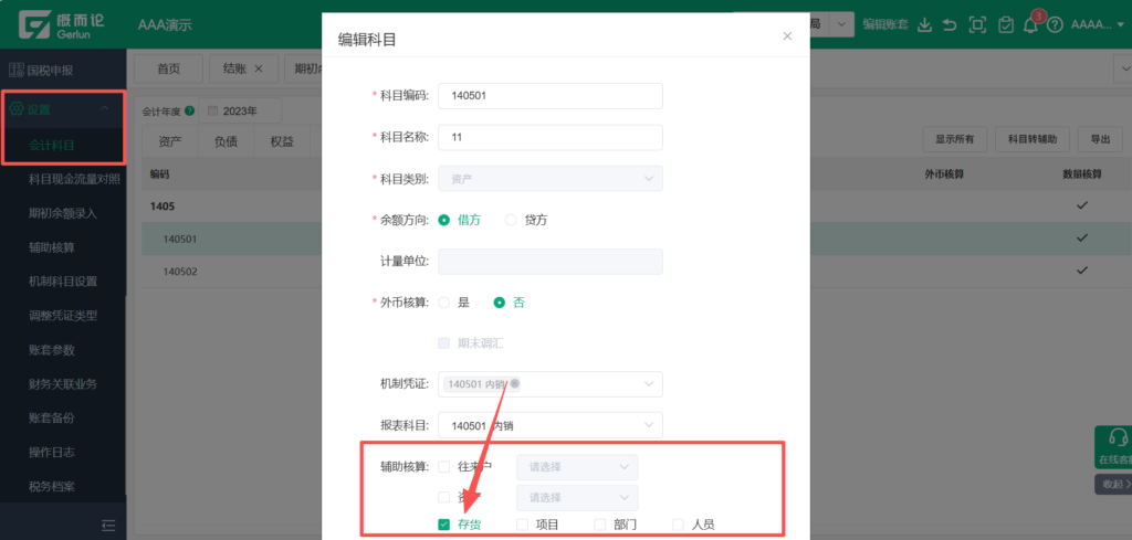 ④所有的发生凭证都改完之后,在【设置】-【会计科目】-【编辑】科目地方取消辅助核算的勾选。