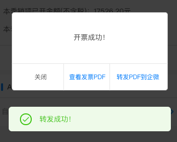 3、开具成功后,用户可直接查看发票的PDF文件,或转发PDF文件到企微群。